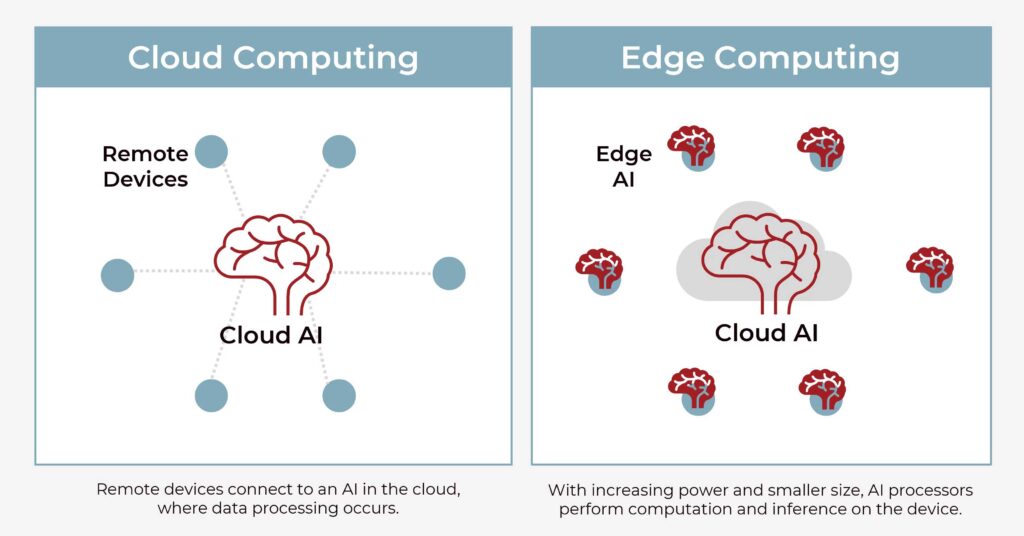 Cloud AI relies on centralized computing resources and continuous data transmission. While powerful, this model depends heavily on stable network connectivity and can be constrained by latency, bandwidth availability, and regulatory requirements related to data handling.